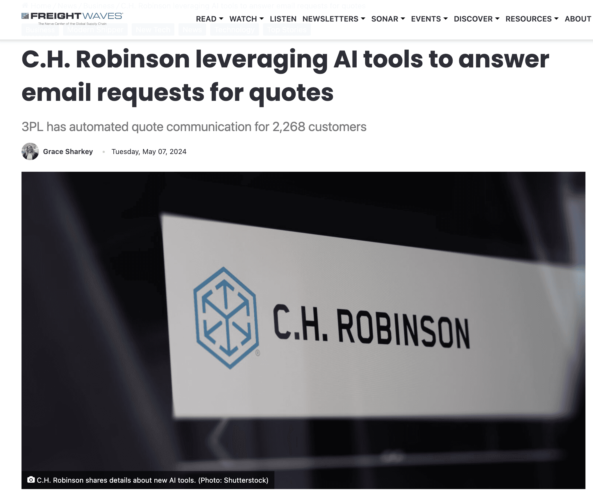 C.H. Robinson, one of the largest U.S. freight brokerages, recently announced its industry-changing technology that automates email transactions. This will usher in a seismic shift in how logistics can be managed. Using AI, their system can read, classify, and respond to incoming emails almost instantly.